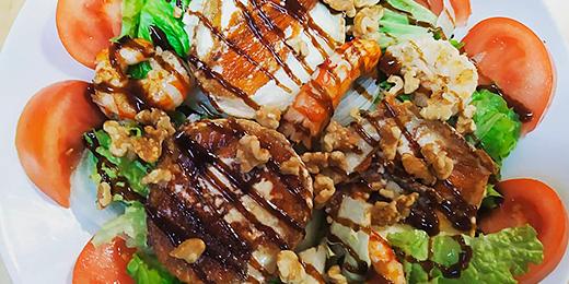 Pescado salvaje a la plancha con patata cocida y ensalada